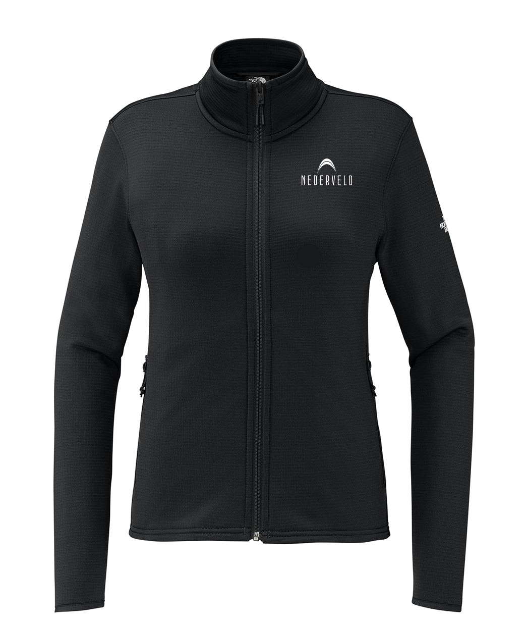 Contrast heat transfer The North Face logo on left sleeve and right back shoulder